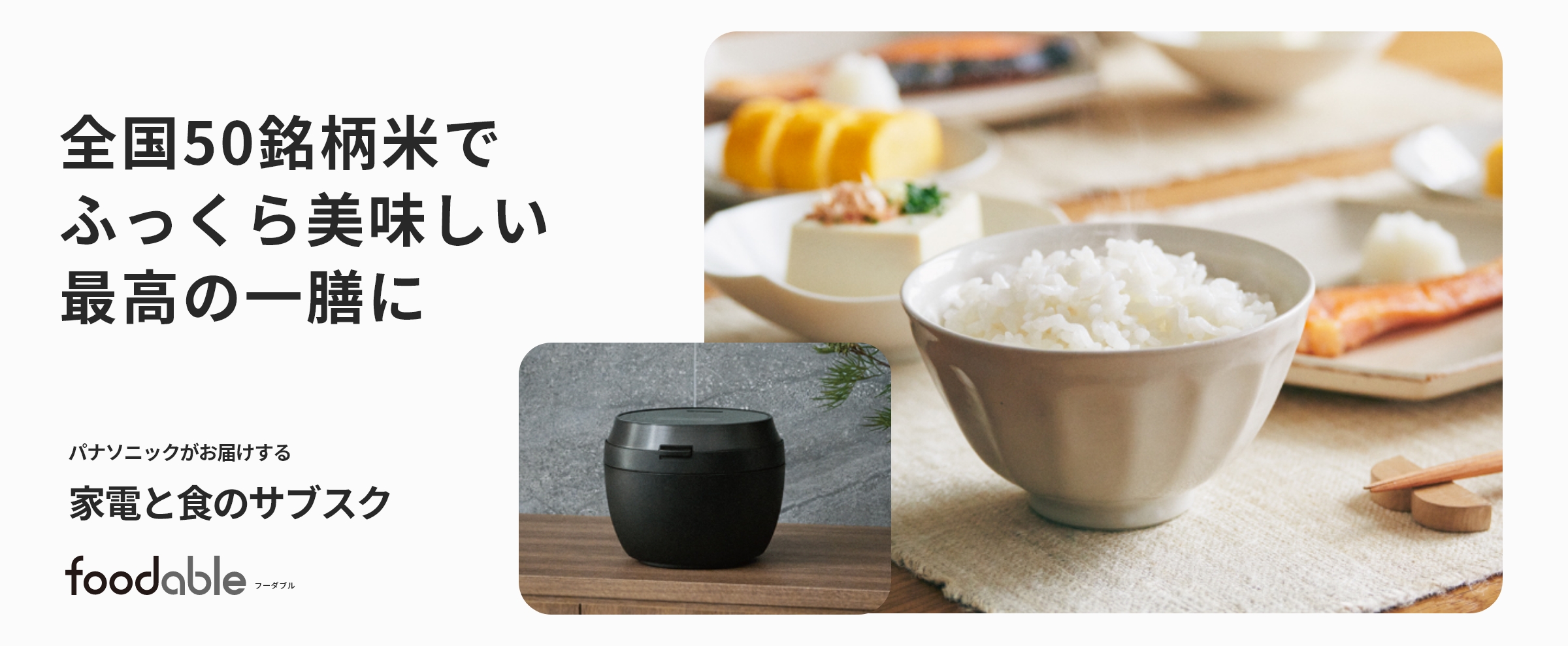foodable(フーダブル)の「炊飯器&銘柄米コース」は、月額2,980円(税込・送料込)で最新のパナソニック炊飯器と全国各地の銘柄米が楽しめる、非常にコストパフォーマンスの高いサービスです。36か月の利用後は炊飯器をそのまま買い取れるため、長期的に見てもお得感があります。