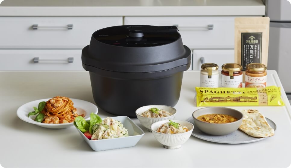 調味料が届くことで「何を作ろうか迷う負担」が減り、家電が調理の手間を軽くしてくれることで「作る労力」も減らせます。両方が揃うことで、料理が生活の負担から日常の楽しみに変わるよう設計されています。